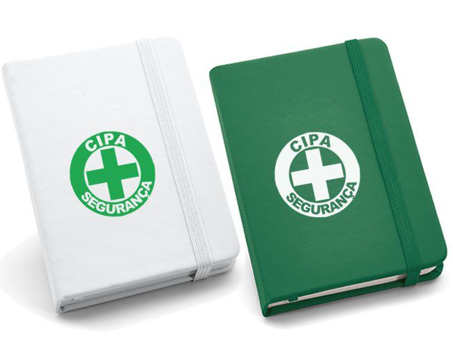Caderneta tipo moleskine emborrachado de frente e verso liso, marcador de página em cetim e fita elástica para fechar. Contém aproximadamente 80 folhas amarelas pautadas.