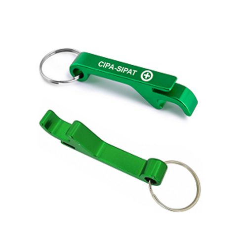 Chaveiro. Alumínio. Com abridor de garrafas.