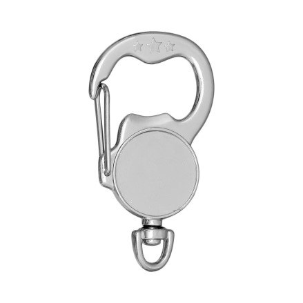 Chaveiro Mosquetão redondo base giratória Abridor de Garrafa 3 Estrelas com espaço para personalizar nos dois lados.