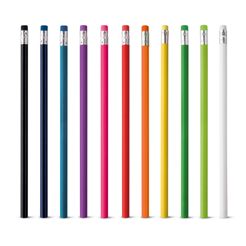 Lápis com borracha. Grau de dureza: HB. Produto certificado de acordo com a portaria Inmetro nº423 de 8/out/2021