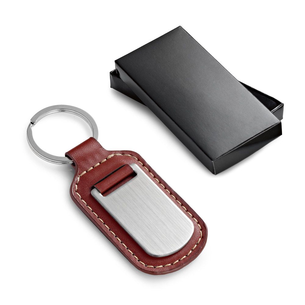 Chaveiro em c. sintético e metal. Incluso caixa presente. 39 x 74 x 5 mm